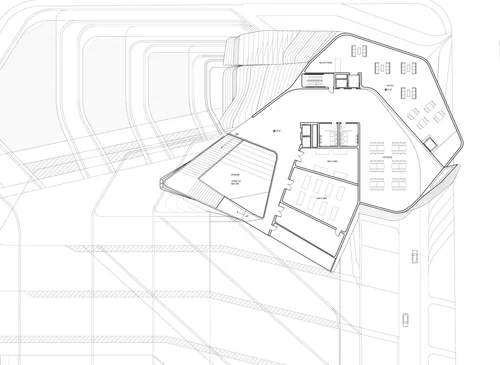 The site for this project, a 60 acre field in Napa Valley, can be approached and animated as a field of vectors that lead to the folding of landscapes into builtscapes. The counter position to that is an autonomous object planted onto the site which claims its identity by being different and opposing the landscape. The challenge of this studio was to find a way to create an architecture which was not autonomous, but at the same time was not embedded into the landscape. Our design consisted of two parts, one being the wine production line that connected to the earth and acted as a semi landscape with a walk able roof. The "V" shape of the production line squeezed together the public space which consisted of two larger cantilevers that overlooked the vineyard and the mountains. The two parts are being pulled in opposite directions and are connected in the middle which is seen as the 'eye of the tornado.' This space is one which can be seen from all levels of the building and is topped off with a skylight bringing light into the space.