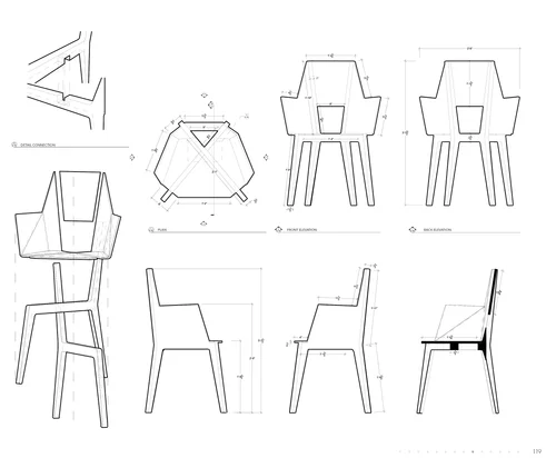 The design of this chair is composed of two ‘h’ shaped wood pieces that are notched to allow for them to slide together. There two pieces create the backbone and structure of the chair. The seat is composed of white plastic that is placed into the wooden structure and reinforced with steel L clips that hold the seat upright.